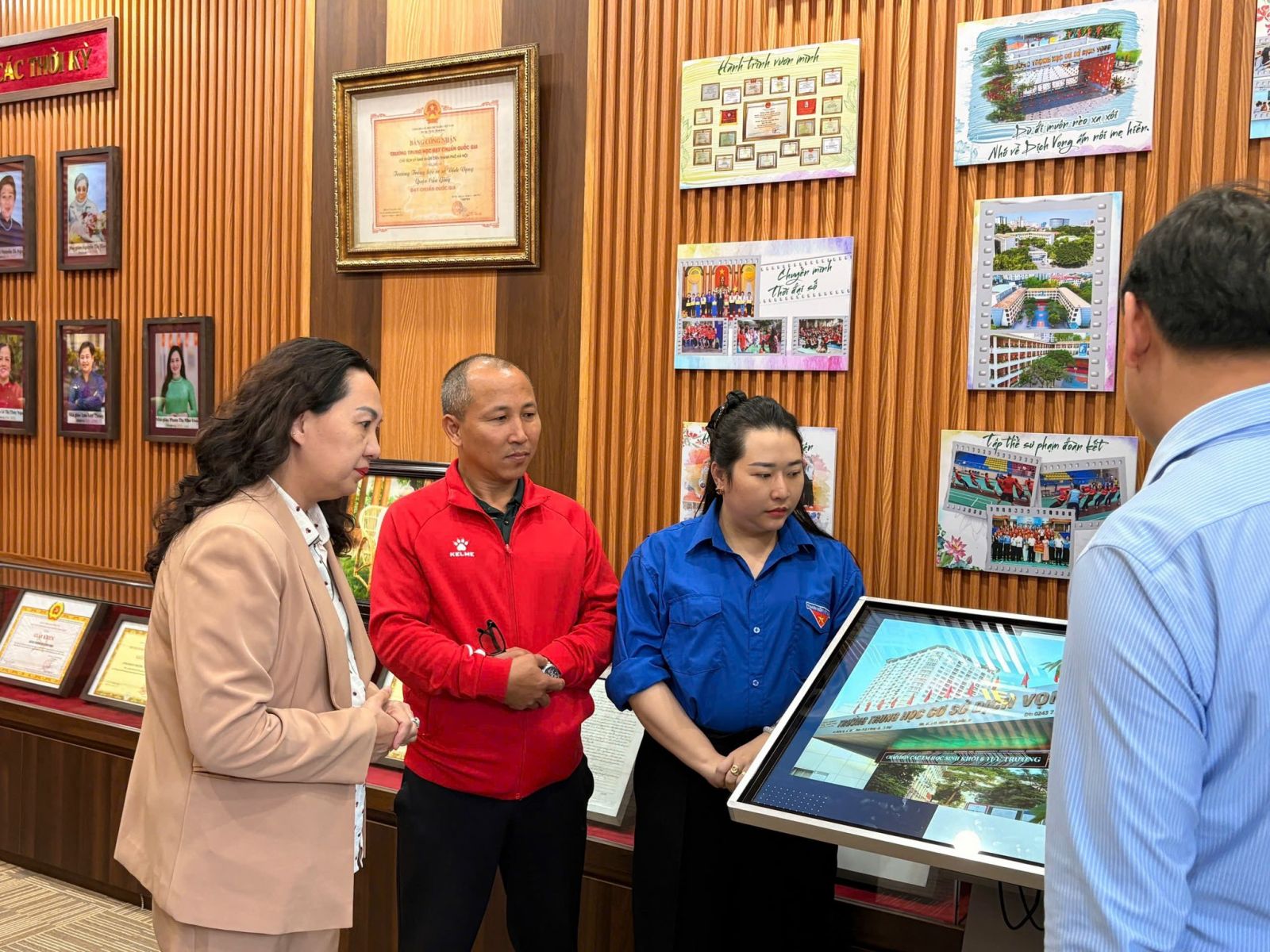 Máy KIOSK cảm ứng được đặt tại phòng truyền thống nhà trường, nhằm giúp cho công tác trưng bày, tra cứu tư liệu và giới thiệu lịch sử phát triển của trường trở nên sinh động, thuận tiện và hiện đại hơn. Thiết bị cho phép học sinh, giáo viên và khách tham quan dễ dàng tiếp cận các tư liệu quý: hình ảnh, video, các mốc son đáng nhớ, thành tích nổi bật qua từng thời kỳ. Ngoài ra, người xem có thể nhìn một cách rõ nét toàn cảnh trường, 360 độ các phòng, cơ sở vật chất phòng chức năng, khu hành chính, thư viện và các hạng mục cơ sở vật chất thông qua hình ảnh và video được tích hợp trong máy.