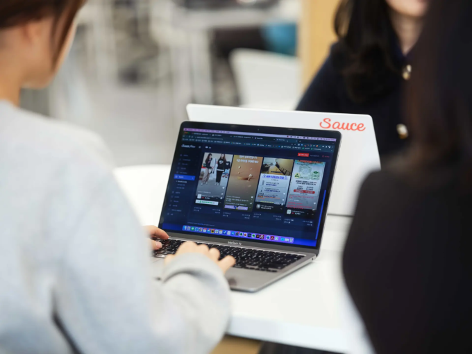 Nhân viên Sauce Live giới thiệu với khách hàng về giải pháp ecommerce tại Hàn Quốc. Ảnh: TOP Group